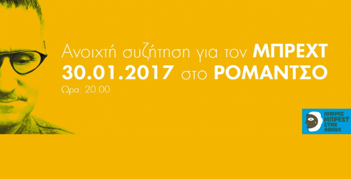Κατηγορία: ΝέαΣυντάκτης: OnlytheaterRobin4Arts με αφορμή την συμπλήρωση εξήντα χρόνων από τον θάνατο του Γερμανού δραματουργού, ποιητή και διανοητή διοργανώνει το φεστιβάλ «Ημέρες Μπρεχτ στην Αθήνα».