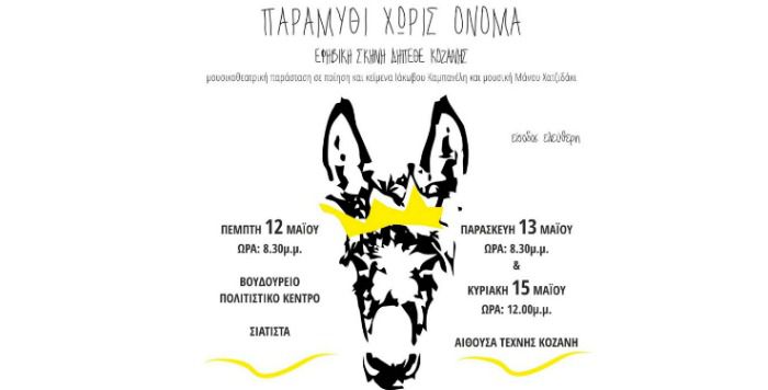 Κατηγορία: ΝέαΣυντάκτης: OnlytheaterΠΑΡΑΜΥΘΙ ΧΩΡΙΣ ΟΝΟΜΑ από το ΔΗΠΕΘΕ Κοζάνης και το Μουσικό Σχολείο Σιάτιστας.