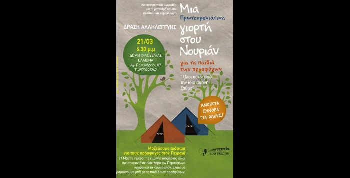 Κατηγορία: ΝέαΣυντάκτης: OnlytheaterΜε αφορμή την πρωτοχρονιά σε ολόκληρο τον Περσόφωνο κόσμο και το Κουρδιστάν στις 21 Μαρτίου, θα παιχτεί η παράσταση ΜΙΑ ΓΙΟΡΤΗ ΣΤΟΥ ΝΟΥΡΙΑΝ στην δομή φιλοξενίας του Ελαιώνα για 200 με 300 παιδιά.